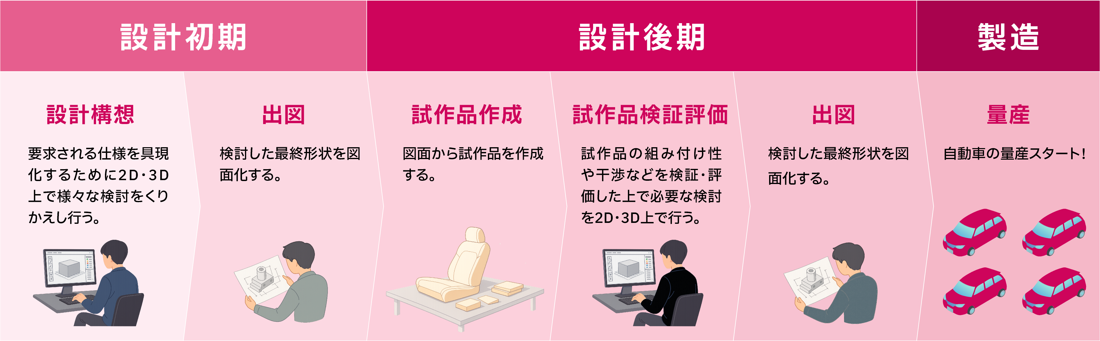 私たちは、自動車開発を中心に設計支援サービスを提供する
